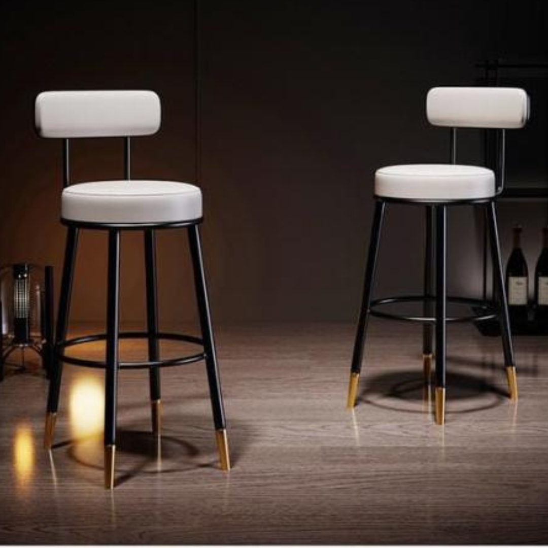 كرسي بار معدن مرتفع ذهبي اللون وتنجيد رصاصي